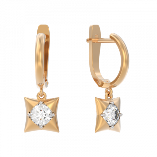Геометричные серьги, украшенные сверкающими фианитами, выполнены с сочетанием красного и белого золота 585 пробы