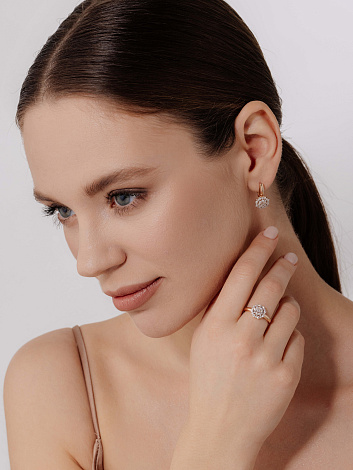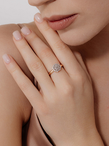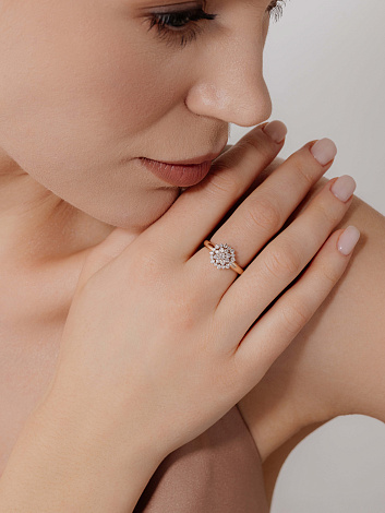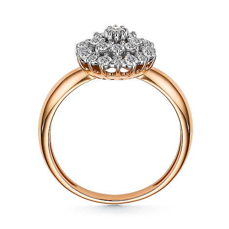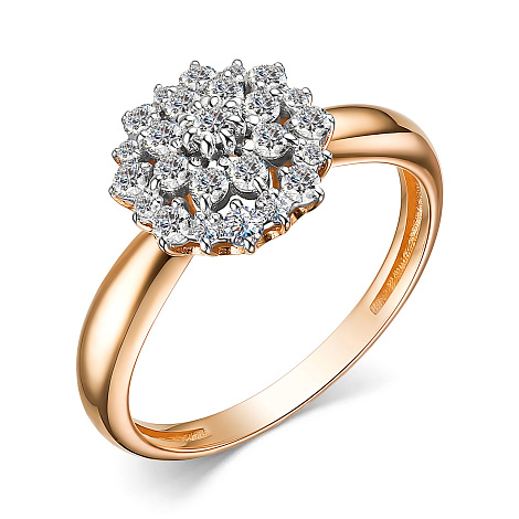 Элегантное кольцо с сверкающими бриллиантами в изящном касте круглой формы, выполнено сочетанием красного и белого золота 585 пробы