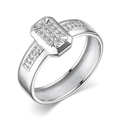 Кольцо геометрия, расположенная в центре композиции из сверкающих бриллиантов, выполнено из белого золота 585 пробы