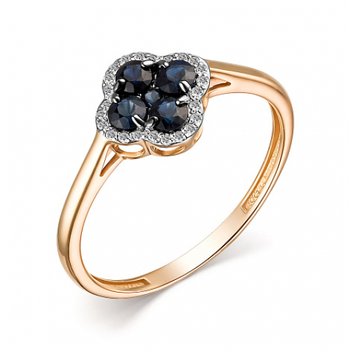 Кольцо украшенное натуральными сапфирами и сверкающими бриллиантами, выполнено с сочетанием красного и белого золота 585 пробы