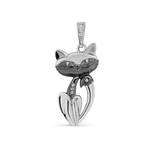 Оригинальная подвеска в анималистическом стиле выполнена в образе "кошки" из серебра 925 пробы, украшенная деликатным блеском фианитов