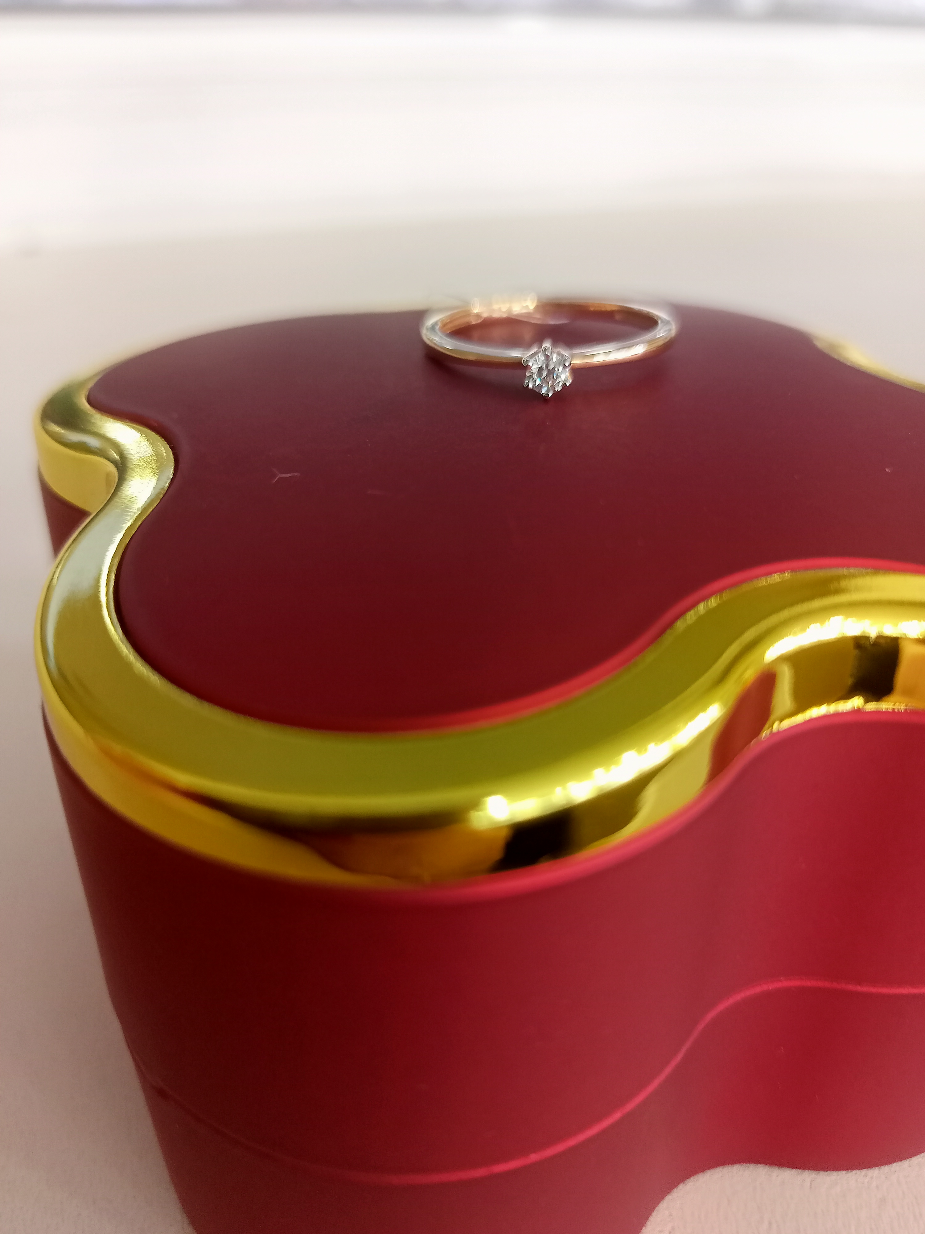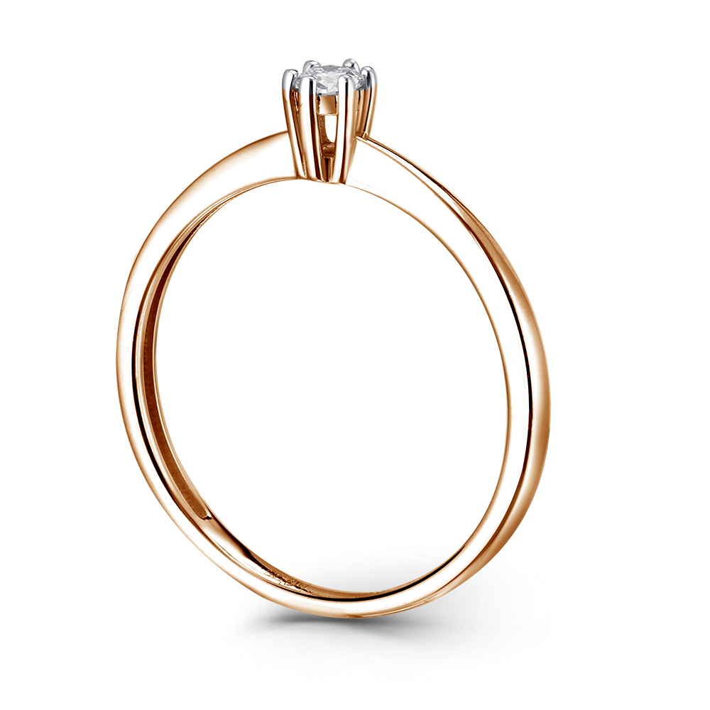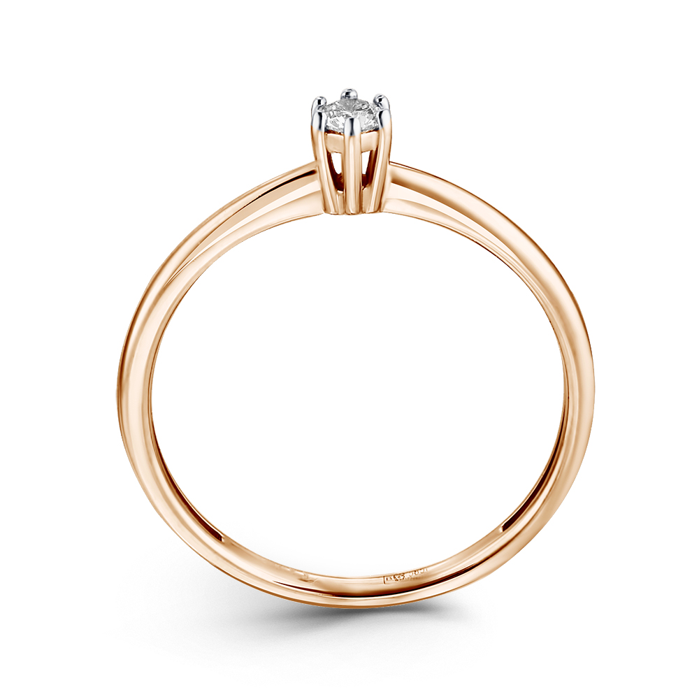 Кольцо с сверкающим бриллиантом выполнено из красного золота 585 пробы