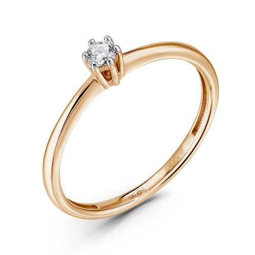 Кольцо с сверкающим бриллиантом выполнено из красного золота 585 пробы