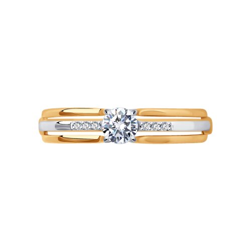 Кольцо с фианитами выполнено из красного и белого золота 585 пробы
