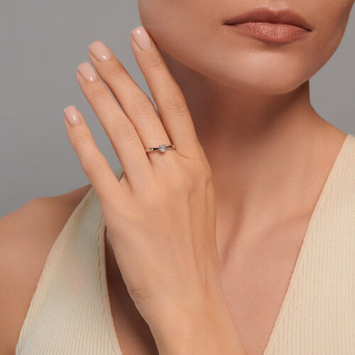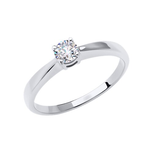 Кольцо с фианитом выполнено из белого золота 585 пробы. Огранка камня максимально раскрывает его красоту, а изящные лапки каста позволяют лучам света играть на поверхности, усиливая её сияние. Изделие представлено брендом SOKOLOV. Вставки: 1 × Фианит недраг Бесцветный Круг 4.00 ~0,451 кар. В комплект поставки входит: