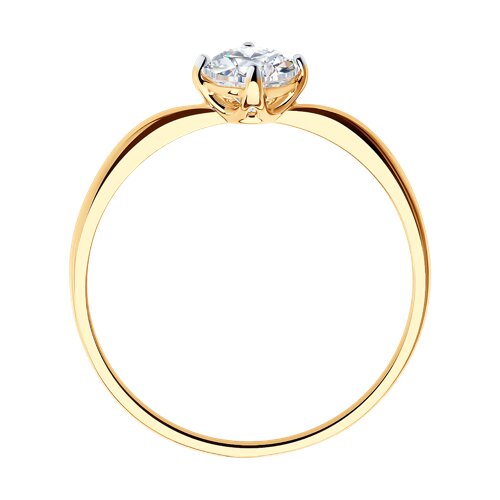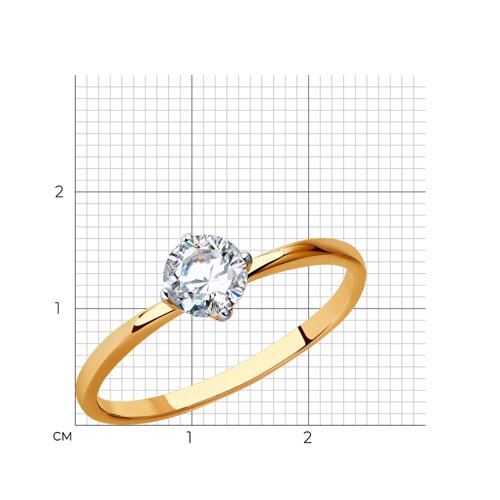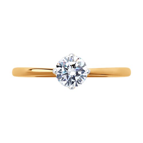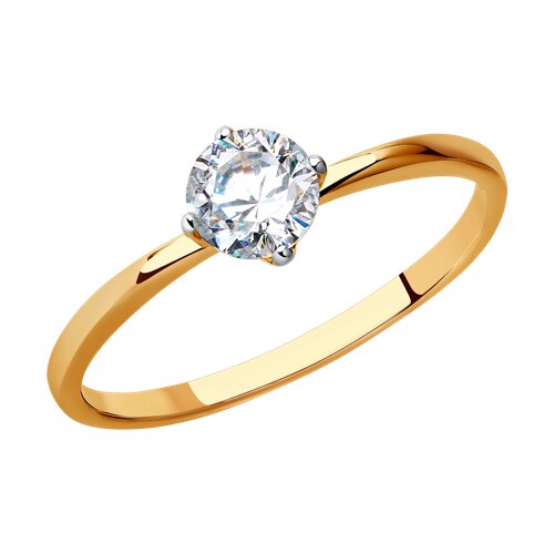 Изящное кольцо классического дизайна с фианитом выполнено из красного золота 585 пробы