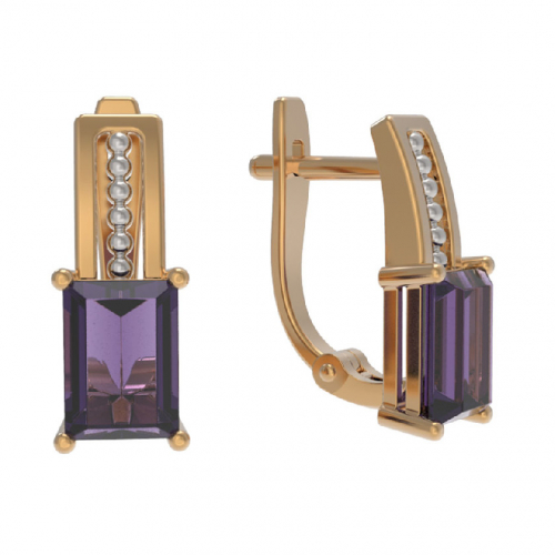 Серьги, красное золото, аметист, проба 585