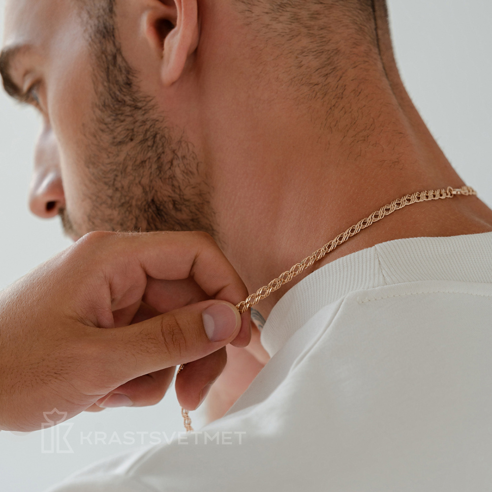 Облегчённая цепь из красного золота 585 пробы с изысканным плетением «Тройной ромб» и чарующей отделкой алмазной грани. Точная геометрия каждого звена и мастерская полировка придают изделию роскошный и выразительный внешний вид. Выполненная в классическом стиле цепочка отличается устойчивостью к механическим повреждениям и способна служить годами, не теряя блеска и привлекательности. Продукция известного бренда Красцветмет соответствует международным стандартам качества и проходит обязательный контроль на производстве, что подтверждает высокие требования изготовителя к собственному ассортименту. Оригинальная концепция дизайна и богатый блеск изделия сделают его фаворитом как среди мужчин, так и среди женщин, стремящихся подчеркнуть свою индивидуальность и стиль. Диаметр проволки 0,60. Представлено брендом КРАСЦВЕТМЕТ. В комплект поставки входит:
