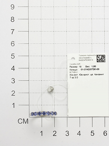 Нежное кольцо, украшенное дорожкой танзанитов, выполнено из родированного серебра 925 пробы. Родий - это металл платиновой группы, который защищает украшение от внешних воздействий и долго сохраняет первоначальный внешний вид. Изделие представлено брендом АЛЬКОР. Средняя характеристика камней на артикул: 7 Кристалл танзанит Синий Круг 1,309. В комплект поставки входит: