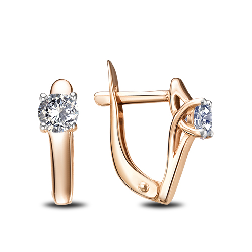 Изящные серьги с сверкающими фианитами, выполнены из красног золота 585 пробы. Классический дизайн украшения универсально подходит к какому угодно образу и способен изящно завершить любой наряд. Тип замка - английский, самый надежный и удобный. Изделие представлено брендом VERONIKA. Средняя характеристика камней на артикул: 2 Фианит круг 4.0 б/ц