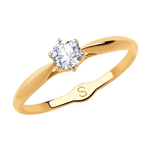 Кольцо выполнено в красном золоте 585 пробы и инкрустировано сверкающим фианитом