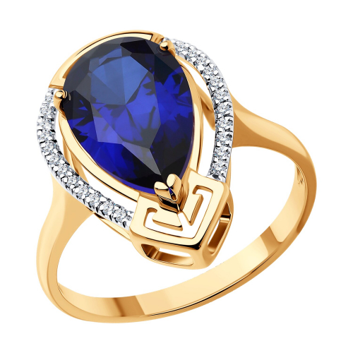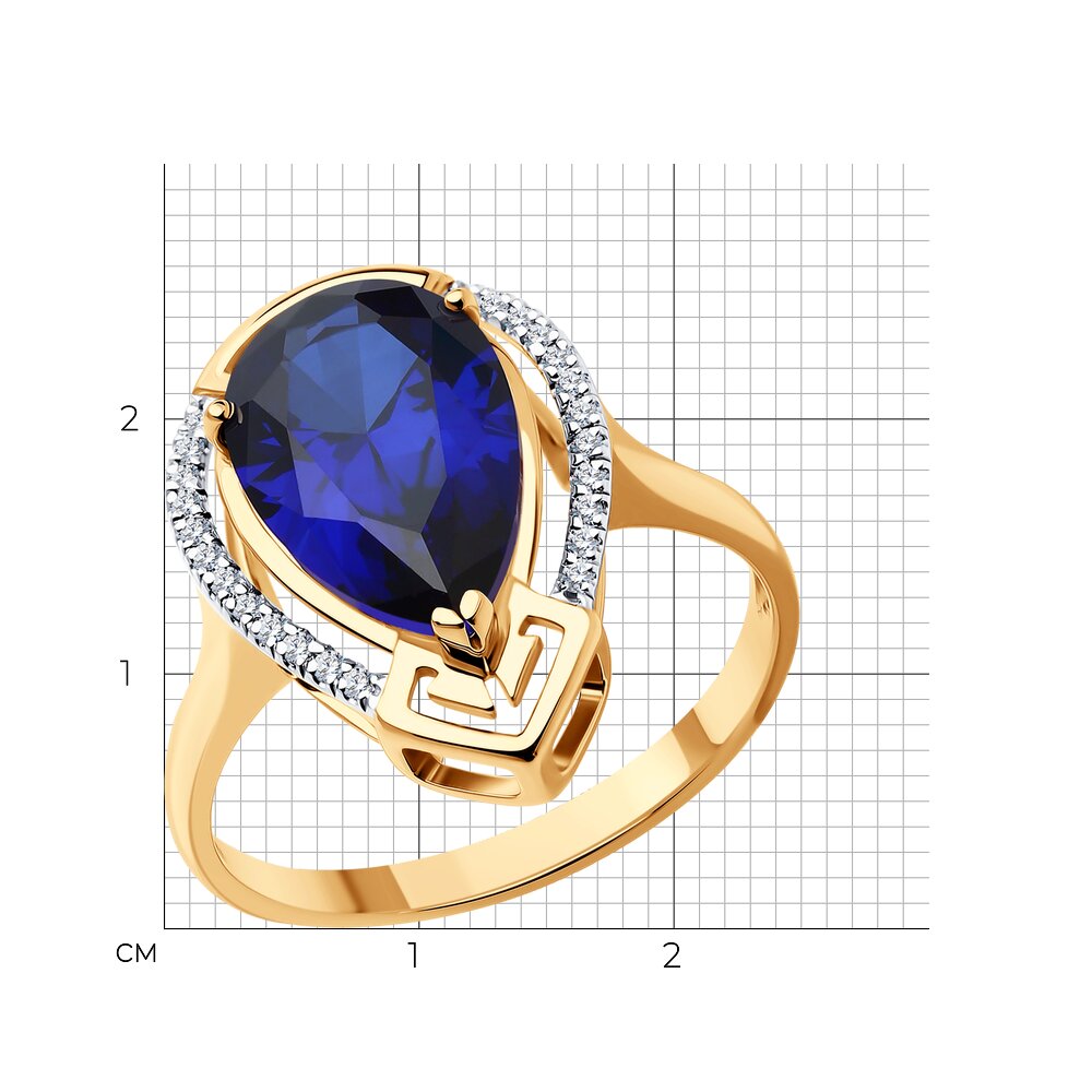 Кольцо из красного золота 585 пробы с бриллиантами и корундом в изящной оправе