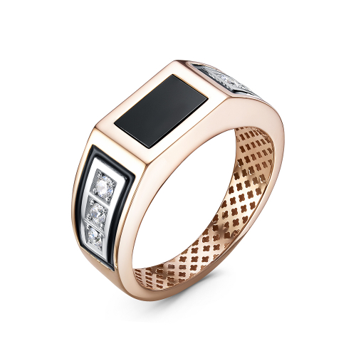 Стильная мужская печатка с фианитами выполнена из красного и белого золота 585 пробы