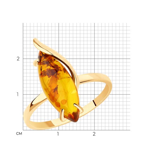 Кольцо с натуральным янтарём выполнено из красного золота 585 пробы