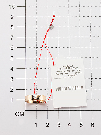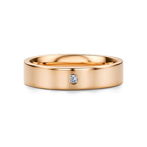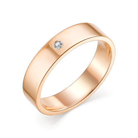 Обручальное кольцо с сверкающим бриллиантом выполнено из красного золота 585 пробы