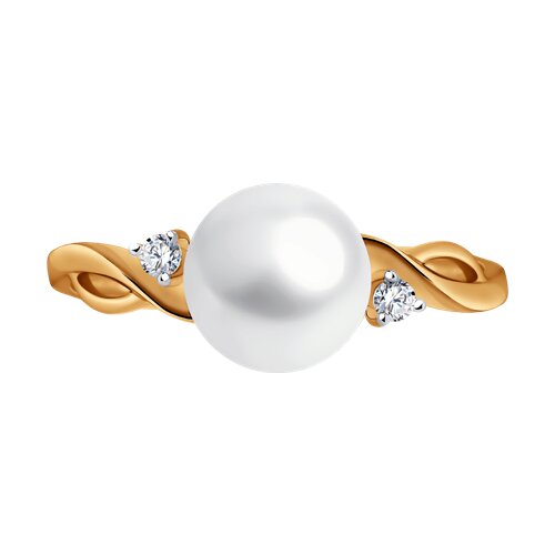 Кольцо с жемчугом и фианитами выполнено из красного золота 585 пробы. Такое украшение идеально впишется в повседневный образ, подчеркнув вашу красоту и элегантность. Изделие представлено брендом SOKOLOV. Вставки: 2 × Фианит недраг Бесцветный Круг 1.75 ~0,086 кар,