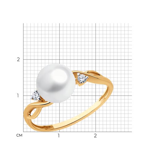 Кольцо с жемчугом и фианитами выполнено из красного золота 585 пробы