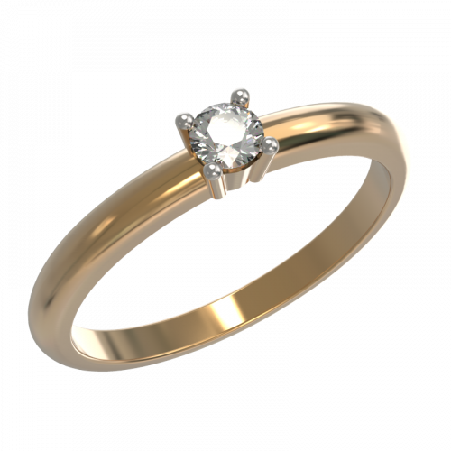 Кольцо с сверкающим бриллиантом выполнено из красного золота 585 пробы