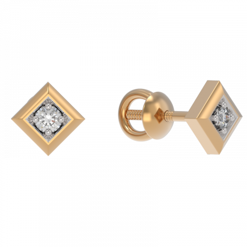 Серьги-пусеты с бриллиантами выполнены из красного и белого золота 585 пробы