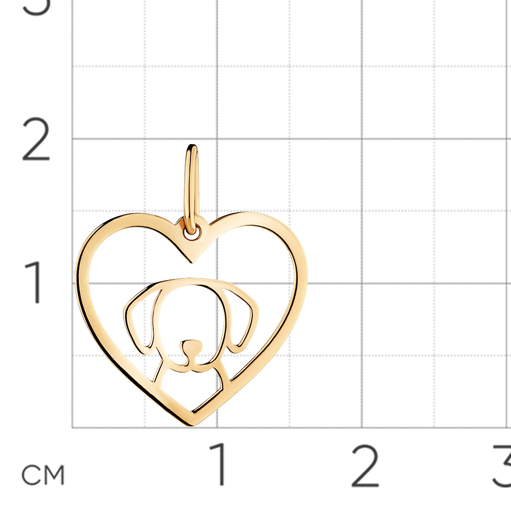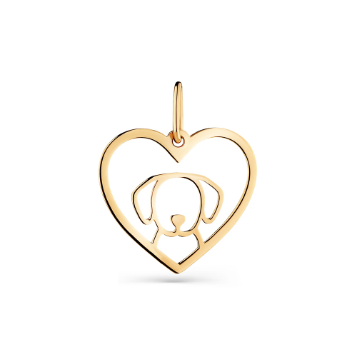 Изящная подвеска в форме сердца, внутри которого изображение милой собачки, выполнена из красного золота 585 пробы
