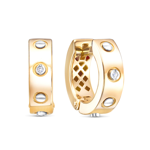 Серьги в стиле Cartier выполнены из жёлтого и белого золота 585 пробы, украшены сияющими фианитами. Оригинальный дизайн этих серёг придется по вкусу всем любительницам украшений в минималистичном стиле. Они созданы, чтобы стать центральным акцентом образа. Тип замка - английский, самый надежный и удобный. Изделие представлено брендом "BERGER". Средняя характеристика камней на артикул: 4 Фианит. В комплект поставки входит: