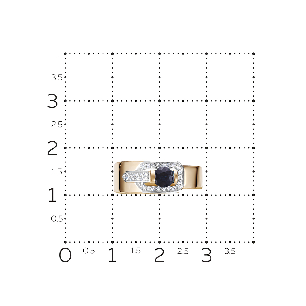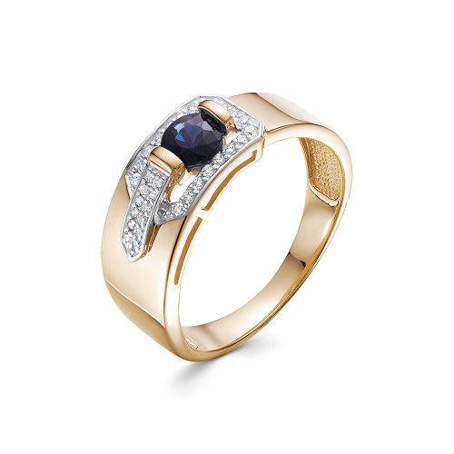 Роскошное кольцо, выполнено в сочетании красного и белого золота 585 пробы, украшено сапфиром синего цвета и сияющей россыпью белых бриллиантов