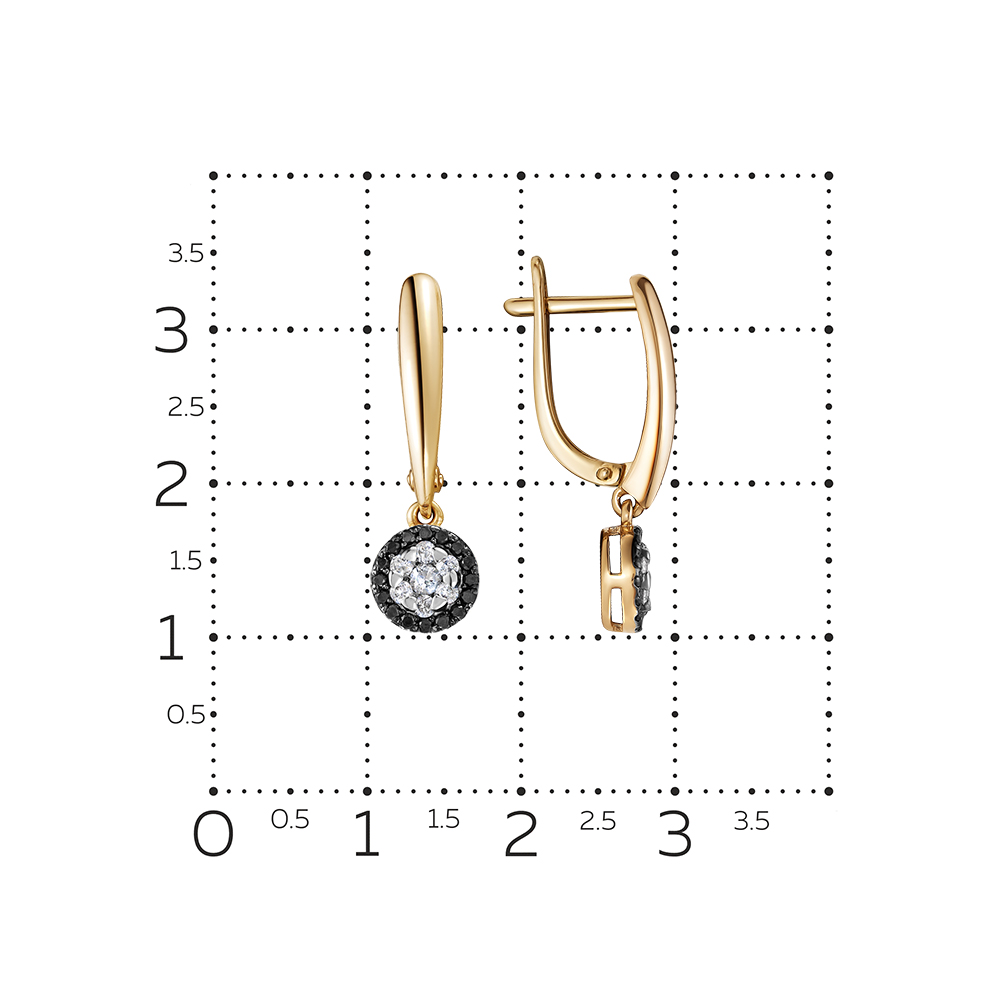 Роскошные серьги с сверкающими чёрными и бесцветными бриллиантами выполнены из красного золота 585 пробы. Оригианльный дизайн и ослепительный блеск бриллиантов привлекают внимание с первого взгляда. Этот аксессуар прекрасно подойдет для дополнения образа любой женщины, подчеркнет ее стиль и элегантность. Тип замка - английский, самый надежный и удобный.Изделие представлено брендом VESNA. Средние характеристики вставки: 2 Бриллиант Круг 57 40-30 0.064 3 6, 12 Бриллиант Круг 57 90-60 0.183 3 6, 32 Бриллиант черный Круг 57 400-200 0.147 7 6 В комплект поставки входит: