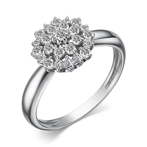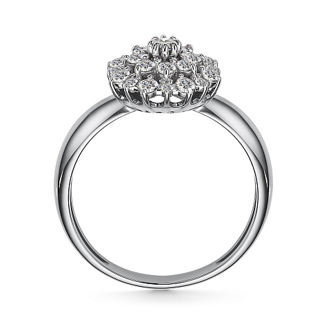 Роскошное кольцо, украшенное бриллиантами на изящном касте круглой формы, выполнено из белого золота 585 пробы