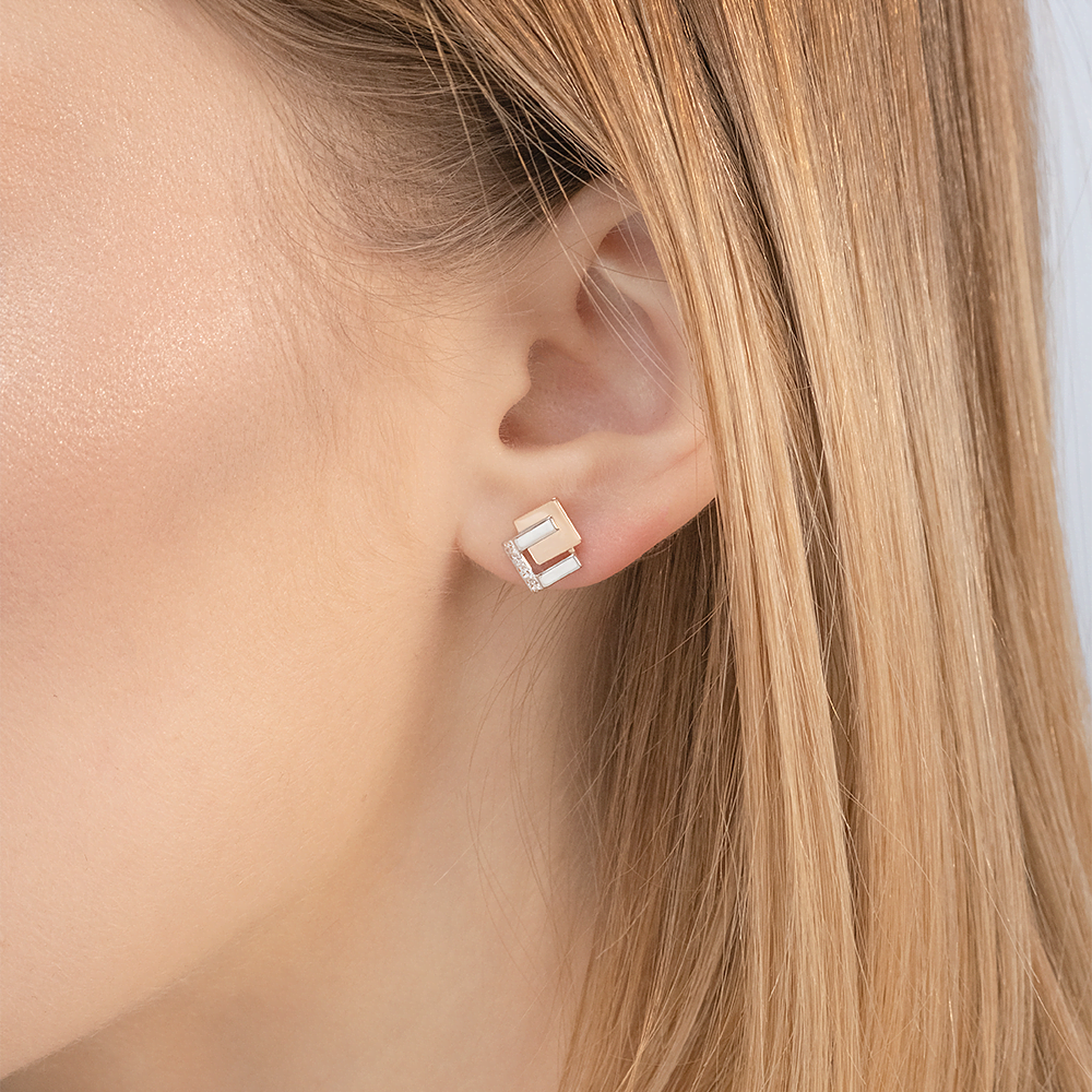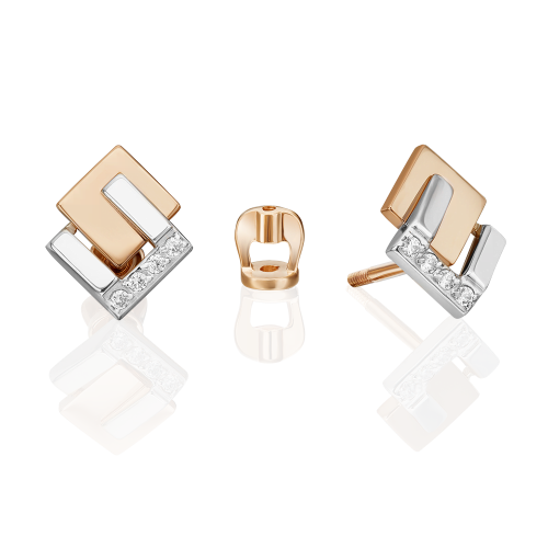 Серьги-пусеты из красного и белого золота 585 пробы из коллекции PLATINA CHARACTER от ювелирного бренда PLATINA