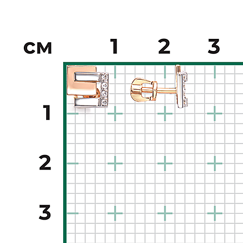 Серьги-пусеты из красного и белого золота 585 пробы из коллекции PLATINA CHARACTER от ювелирного бренда PLATINA. Дизайн украшения в стиле минимализм и геометрия. Серьги вручную инкрустированы бесцветными фианитами, сияние которых эффектно перекликается с блеском белого золота. Такое украшение станет модной изюминкой в повседневном или деловом образе. Тип замка - винтовой, самый надежный и комфортный. Вставки: Фианит круг 8 В комплект поставки входит:
