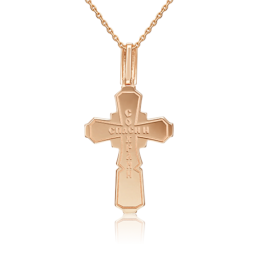 Православный крест из красного и белого золота 585 пробы, среднего размера