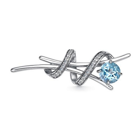 Изящная брошь-булавка выполнена из серебра 925 пробы. Изделие представлено брендом Алькор. Вставка: 1 Топаз Sky Blue Голубой Круг 0,984