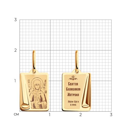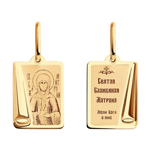 Подвеска - икона Святая блаженная Матрона Московская, в которой исполнены все каноны Православной Церкви, выполнена из красного золота 585 пробы с лазерной обработкой