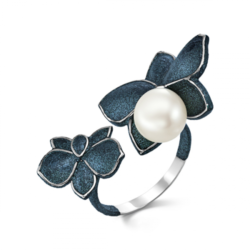 Кольцо разъёмное из серебра 925 пробы с синей эмалью и белым жемчугом из эксклюзивной коллекции «Dama di Venezia» , в которой каждое украшение настоящие произведения искусства ручной работы
