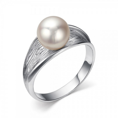Кольцо классического дизайна с жемчугом выполнено из родированного серебра 925 пробы