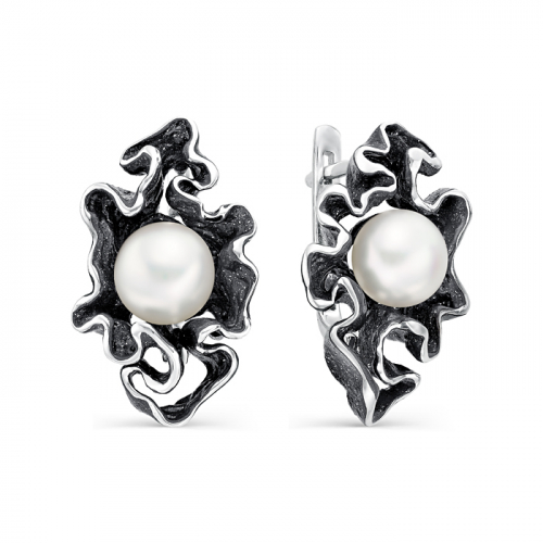 Роскошные серьги выполнены из серебра 925 пробы украшены ювелирной эмалью и белым жемчугом
