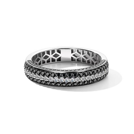 Изящное кольцо выполнено из белого золота 585 пробы, украшено дорожкой чёрных сверкающих бриллиантов
