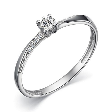 Стильное помолвочное кольцо с роскошными бриллиантами выполнено из белого золота 585 пробы. Безупречный стиль и изысканная красота в каждой детали, идеально впишется в повседневный образ, подчеркнув вашу красоту и элегантность. Изделие представлено брендом "Алькор".Средние характеристики вставки: 8 Бриллиант Круг 17 0.024 2/3