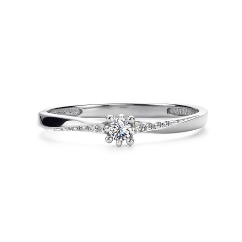 Стильное помолвочное кольцо с роскошными бриллиантами выполнено из белого золота 585 пробы