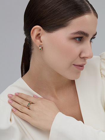Роскошное кольцо, выполнено в сочетании красного и белого золота 585 пробы, украшено натуральным изумрудом с дорожкой сияющих бриллиантов. Изделие представлено брендом Алькор. Средние характеристики вставки: 1 Изумруд Круг 0.164 3/3