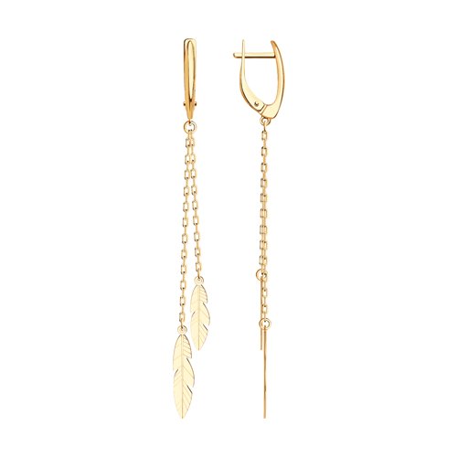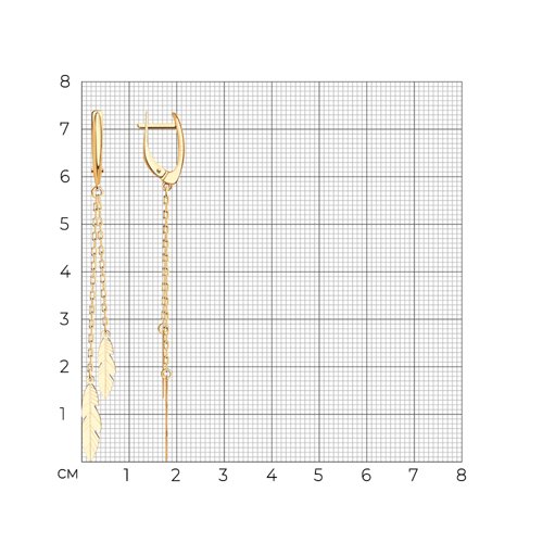 Нежные длинные серьги, с подвесками на цепочке, выполнены из красного золота 585 пробы.
