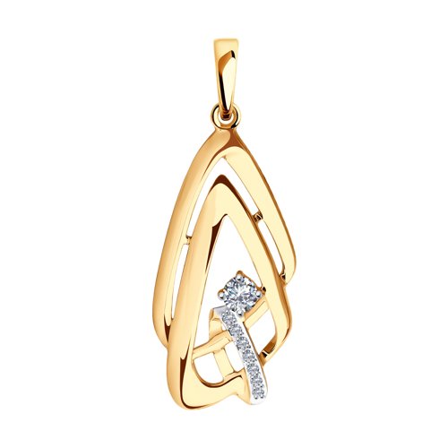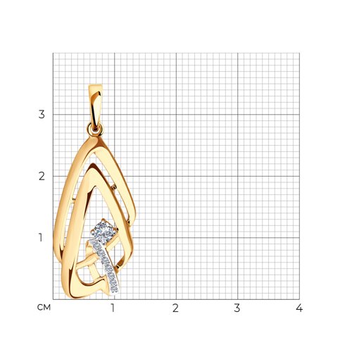 Подвеска, выполнена в сочетании красного и белого золота 585 пробы, украшена россыпью искрящихся фианитов