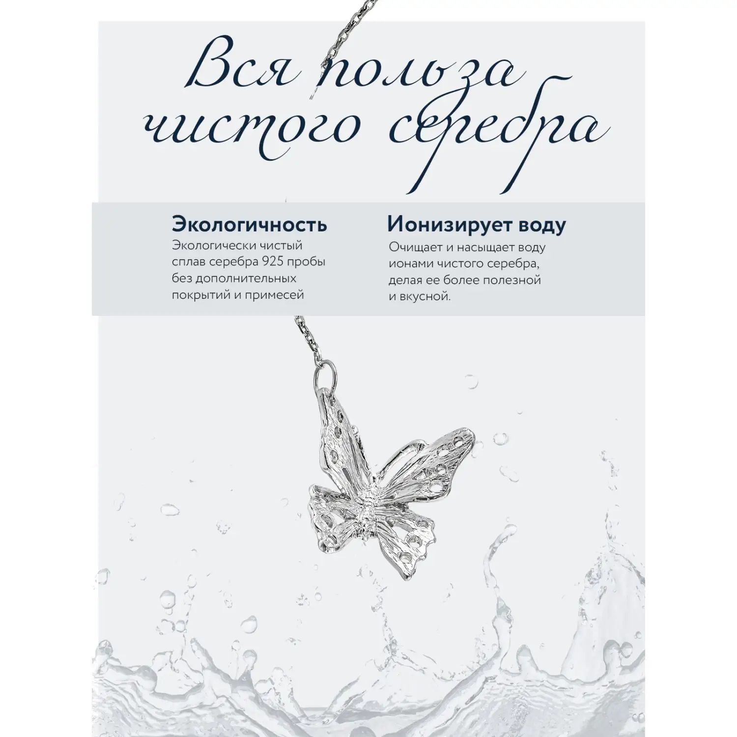 Красивый и полезный купила подарок на серебряную свадьбу! Выполнен из серебра 925 пробы,без примесей. Очень удобен в использование,часть фиксируется на стакане, а другая опускает в стакан с водой и убивает бактерии и заряжает воду ионами серебра ,что очень полезно! Рекомендую!