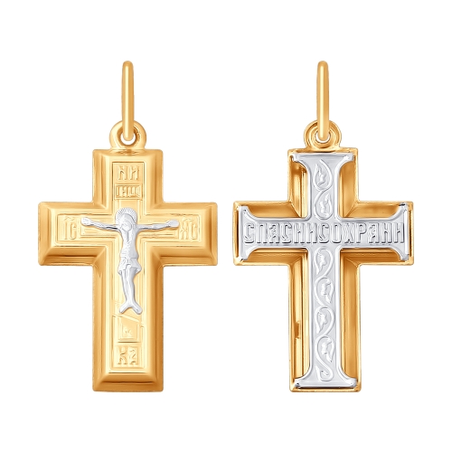 Православный крестик из комбинированного золота