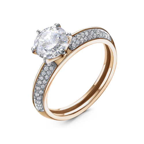 Кольцо выполнено из красного и белого золота 585 пробы с фианитами - это классика для повседневных образов
