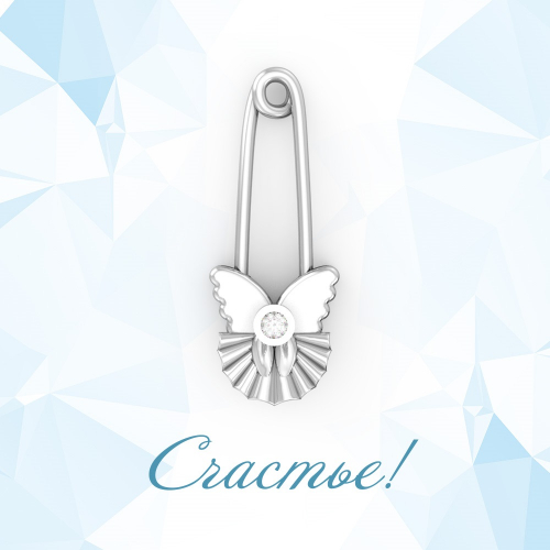 Изящная брошь-булавка от сглаза, выполнена из серебра 925 пробы, украшена фианитом