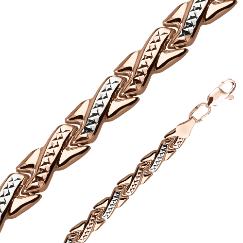 Крупный браслет с выразительным геометрическим мотивом, созданный из красного и белого золота 585 пробы с обработкой «алмазная грань»