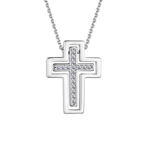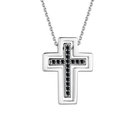 Базовое стильное колье из серебра с трендовой подвеской в виде креста с блестящими фианитами. Вставка: 17 Фианит Белый Круг 0,279