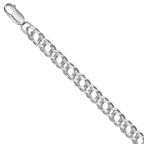 Полновесная цепь с практичным и модным плетением "Двойной ромб" выполнена из родированного серебра 925 пробы