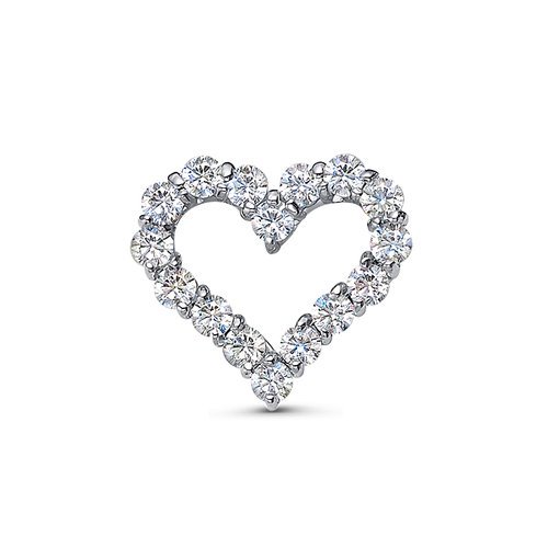 Романтичная подвеска в форме сердца, украшенная сверкающими фианитами, выполнена из родированного серебра 925 пробы